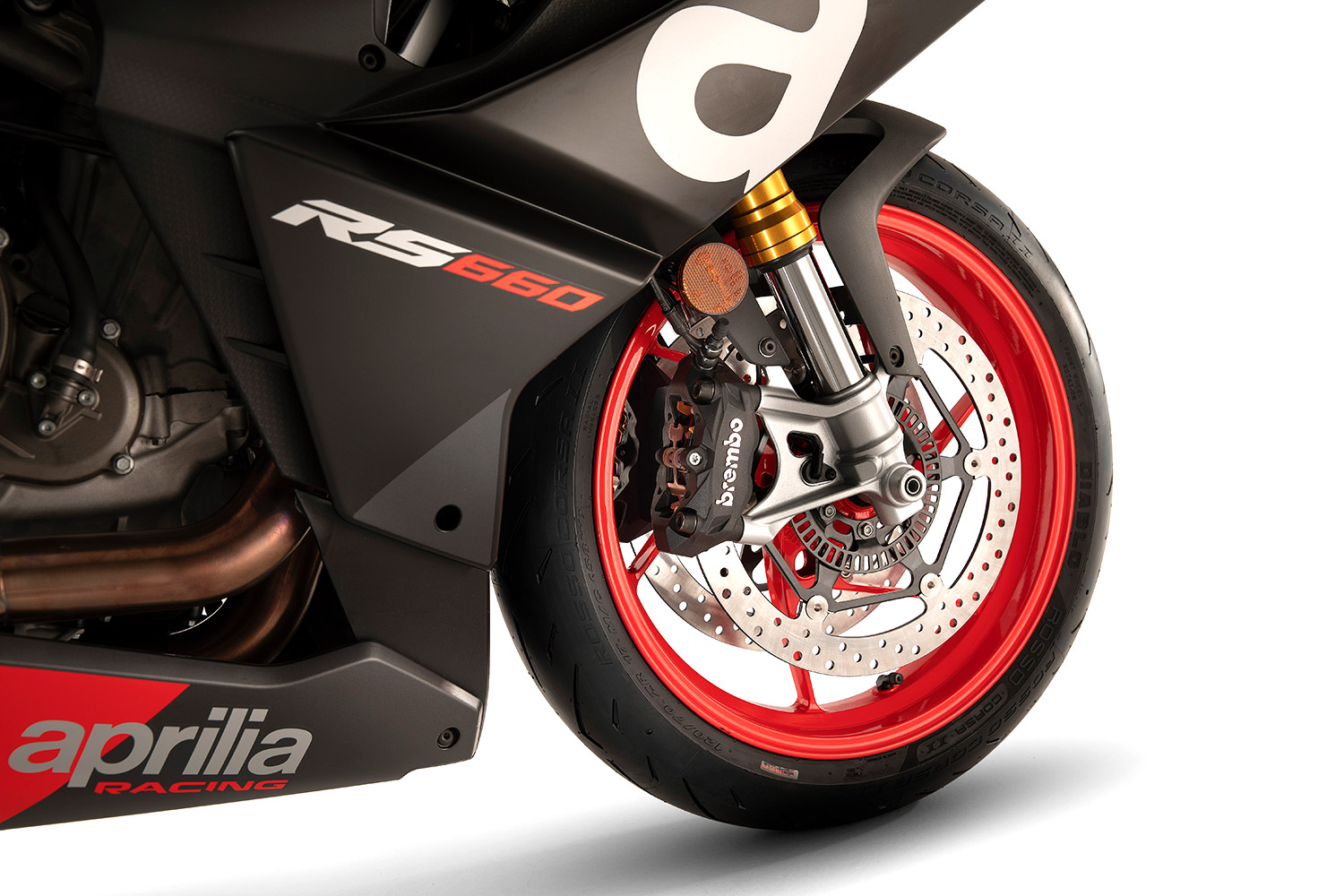 Selbstverständlich verfügt die neue RS 660 über die jüngste Generation des elektronischen Steuersystems aPRC - Aprilia Performance Ride Control. Die 6-Achsen Inertia-Plattform arbeitet mit Gyroskopen und Beschleunigungssensoren. Über Algorithmen werden Steuerbefehle an das Motormanagement gegeben, die die Power des Motors entsprechen der Fahrsituation in Echtzeit anpassen. aPRC steht nicht nur für mehr Sicherheit. Es steht zugleich für ein Plus an Fahrspaß und hilft dem Fahrer seine eigene Performance zu optimieren.
